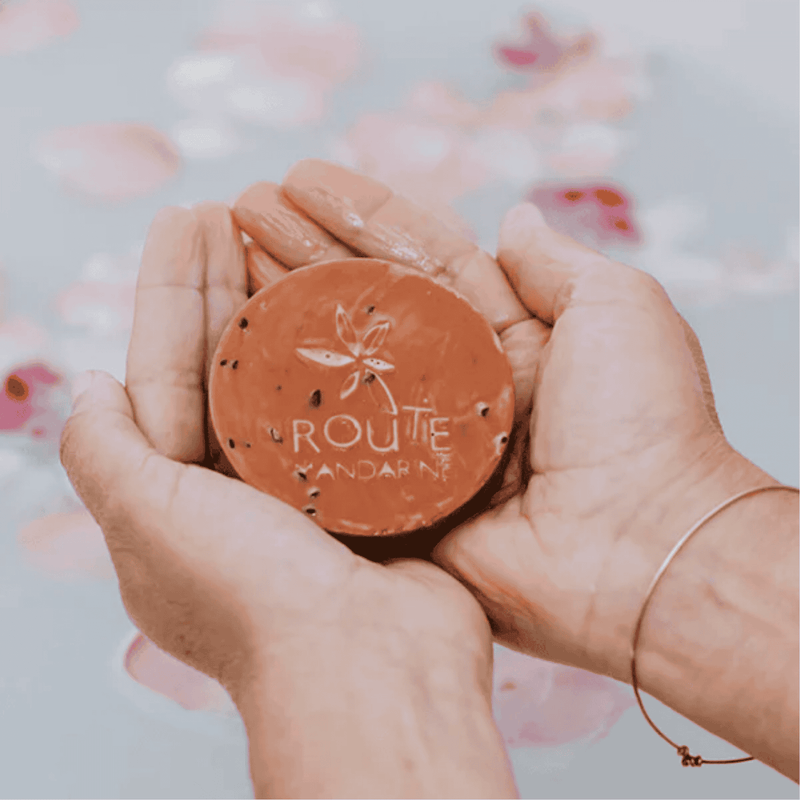 Les chutes de savon dans le filet à savon et c'est parti pour une douche avec les délicieuses odeurs de route mandarine. Pas de gaspillage, pas de gant de toilette... bref super pratique.